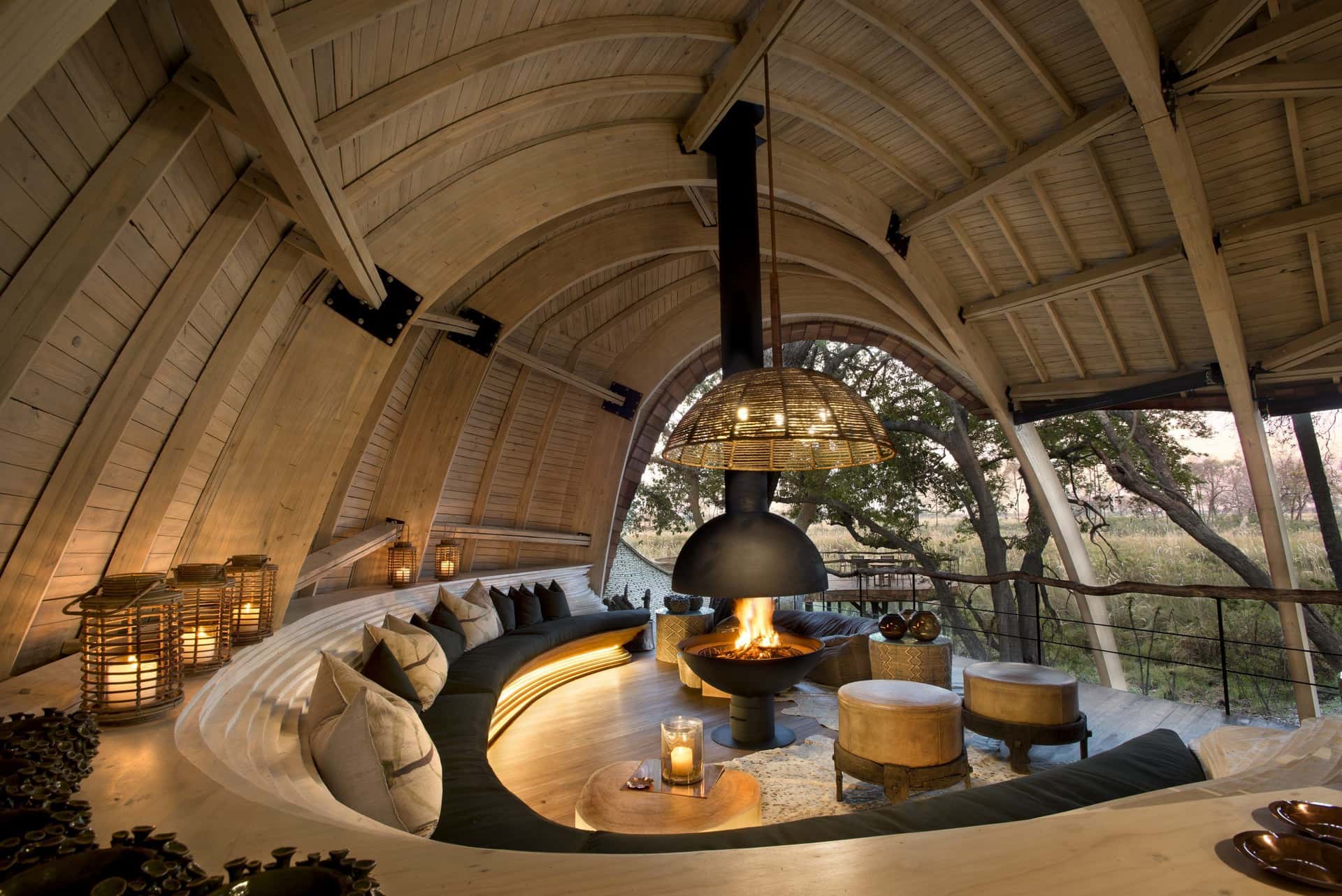 Blending seamlessly with the Okavango Delta’s golden floodplains, Sandibe Okavango Safari Lodge is a striking fusion of organic architecture and untamed beauty. Inspired by the pangolin’s natural form, this lodge offers an immersive, luxurious safari experience in one of Botswana’s most wildlife-rich regions.